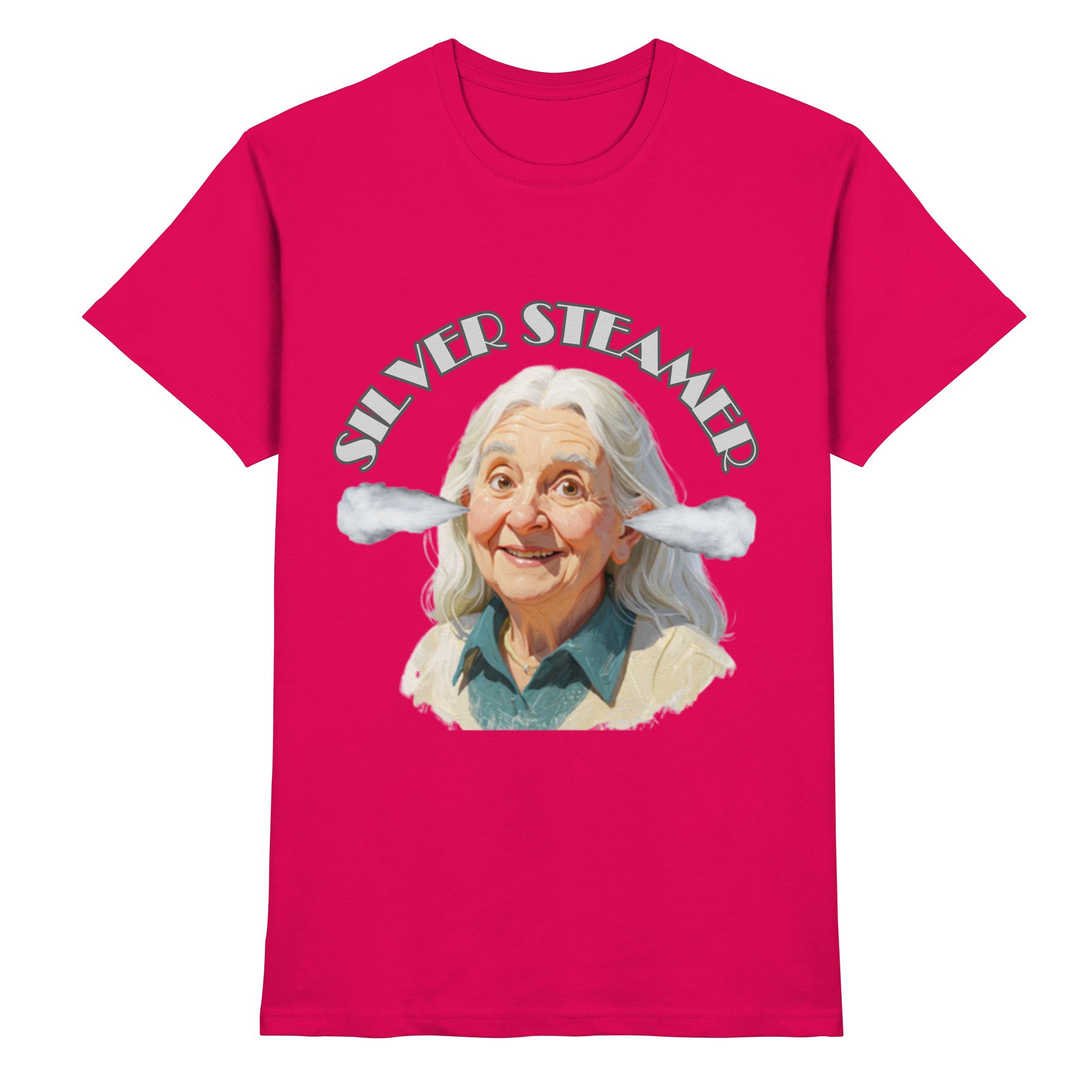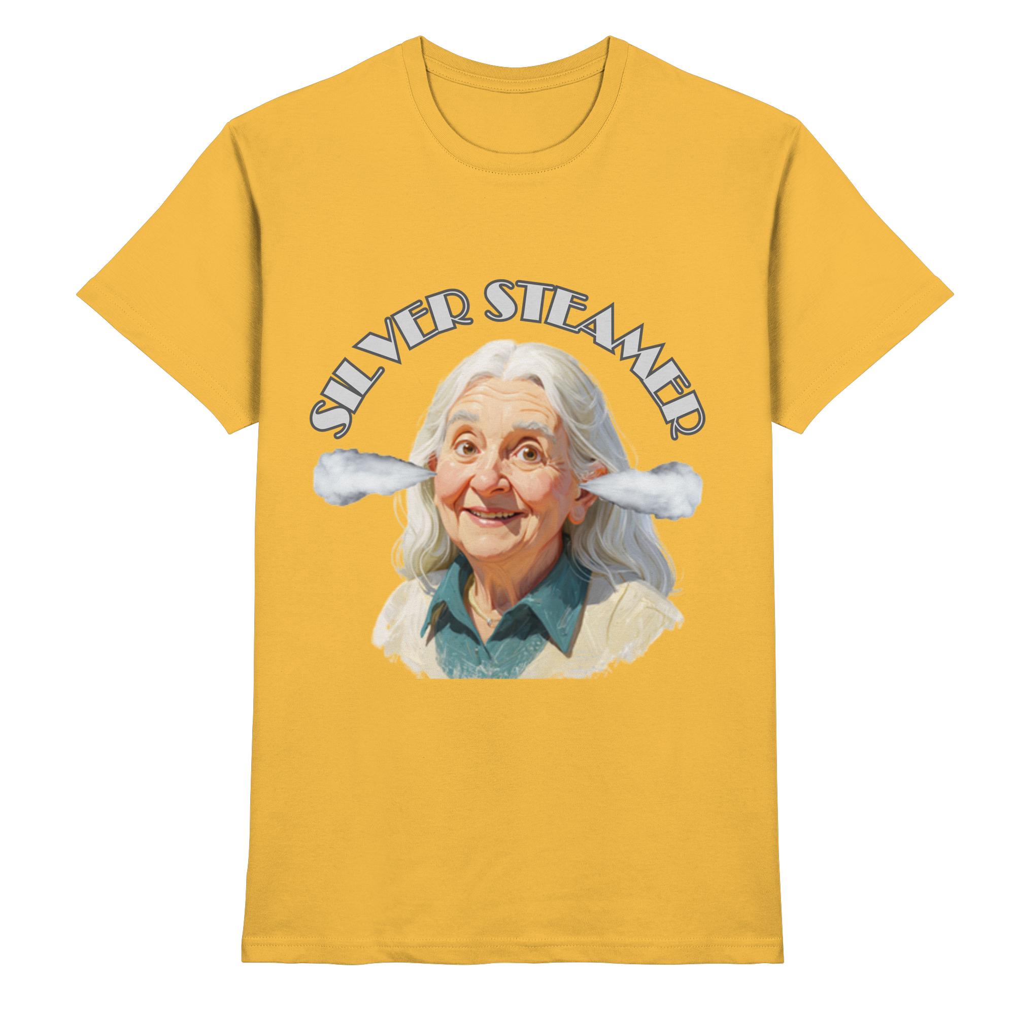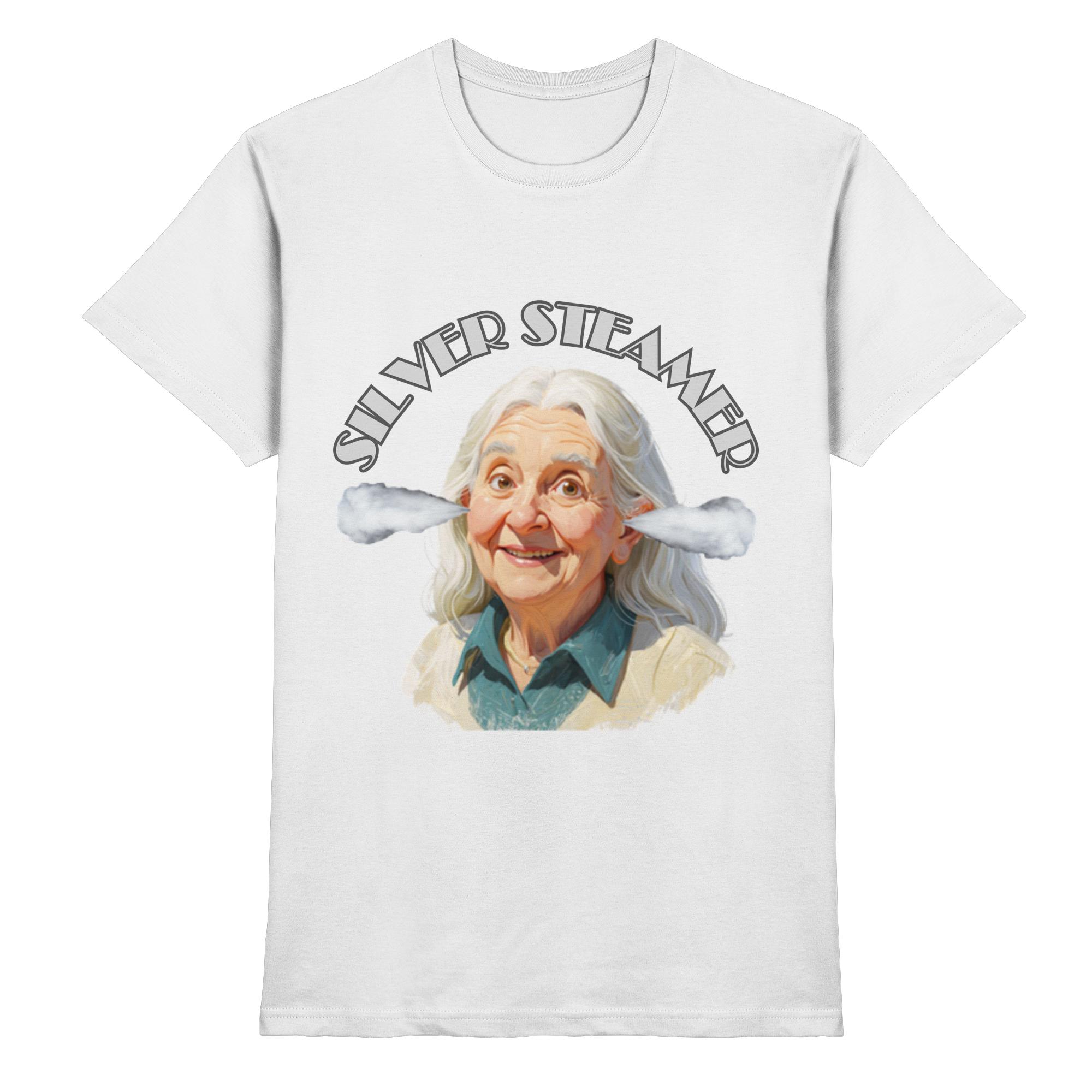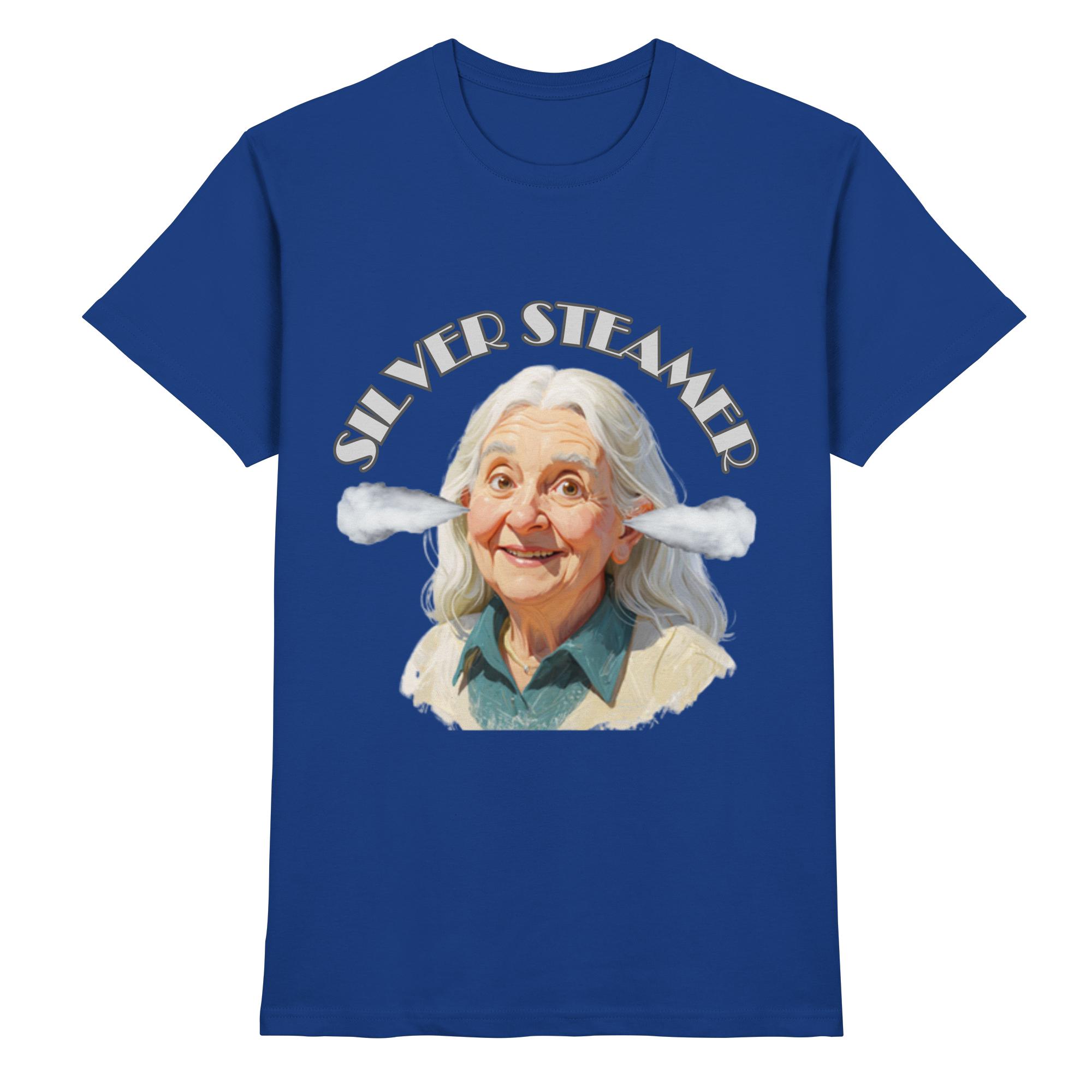“Das Silver Steamer Club Shirt ist die perfekte Wahl für alle Silver Steamerinnen, die Wert auf Qualität und Komfort legen. Gefertigt aus 100 % ringgesponnener Baumwolle, fühlt es sich angenehm weich auf der Haut an. Mit einer Grammatur von 185 g/m² ist es robust und langlebig. Der klassische Rundhalsausschnitt in 1×1-Rippstrick sorgt für eine normale, bequeme Passform. Betonen Sie Ihr Abenteuerherz und zeigen Sie, dass Sie unter ‘Dampf’ stehen, mit unseren einzigartigen ‘Silver-Steamer Akteuren‘ auf der Brust. Es ist mehr als nur ein T-Shirt – es ist ein Symbol der Zugehörigkeit zu einer wachsenden Community.”